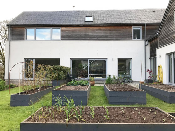 New build low energy 4 bedroomed house in the Moffat Conservation Area. The house follows passive house principles of incorporating high levels of insulation and air tightness within the construction and adopts renewable energy technology with an air source heat pump delivering all heating and hot water. Slate roofs incorporating solar panels with horizontal cedar cladding and rendered walls combine to provide a robust and enduring presence along with high performance triple glazed windows which take advantage of the courtyard views.